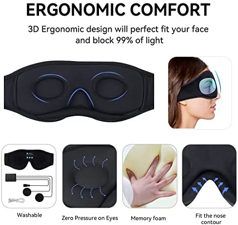 【 Soft & Ideal for Side Sleeper 】: The wireless bluetooth 3D eye mask is made of velvet and stretch cotton for softness and comfort. Breathable slow-rebound memory foam and smooth fabric allow you to release facial pressure and help to get to sleep quickly. sleep headphones at only 0.25 inches thick and you can move the speakers to the desired position, ideals for side sleepers