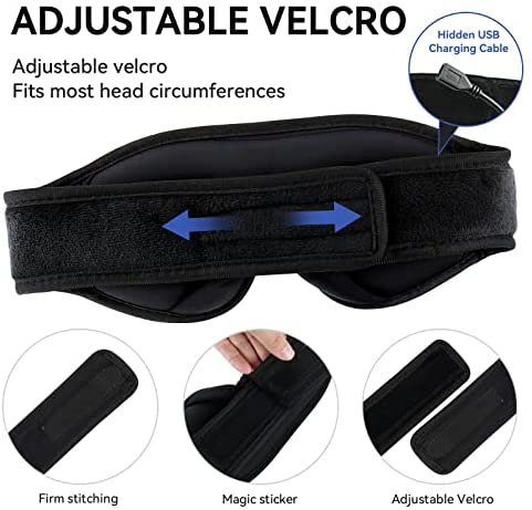 【 Long Time Play, Washable 】: Sleep headphones bluetooth charge only about 2 hours and provide more than 10 hours playing time, support a whole night,won’t be waked up at night. Eye mask for sleeping with newly designed Velcro strip, adjustable to fit head size, fits head circumference 20-27 inches. The Bluetooth moudle and wires can be removed from the sleep mask and then sleeping mask can be washed
