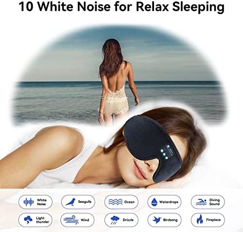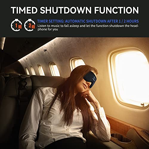 【 Auto Shut Down & Bluetooth5.0 & 10 Soothing Sounds 】: HD HIFI sound with the latest Bluetooth5.0 technology to maintain sound quality. sleep mask with bluetooth headphones pair with any Bluetooth-enabled smartphone or tablet devices quicker & easier. With timer function, you can set it to automatically shut down after 1 or 2 hours. Comes with 10 relaxing musics:radio/light thunder/seagulls/ocean/drizzle/slim/bird chirping/sound of streams/diving/firewood