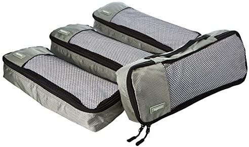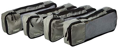 Amazon Basics 4 Piece Packing Travel Organizer Cubes Set – Slim, Grey