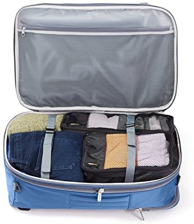 Front pocket and front-top pocket for easy access to documents and travel liquids; main upper packing compartment with organizer, expandable storage space tuck-away ID pocket