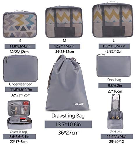 BAGAIL 8 Set Packing Cubes Luggage Packing Organizers for Travel Accessories