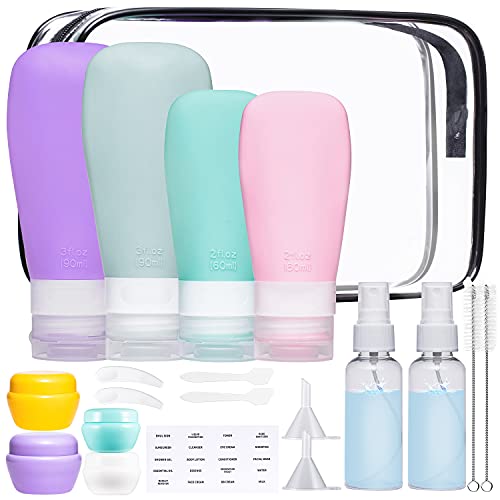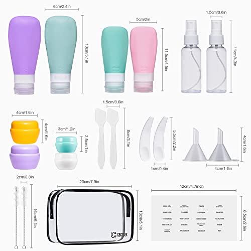 CBCYBER Silicone Travel Bottles Set for Toiletries Leak Proof Travel Size Bottles 20 PCS TSA Approved Travel Size Toiletries Containers Travel Accessories for Shampoo Make up Lotion Soap Liquids