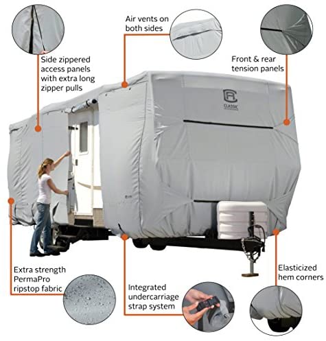 PermaPRO RV covers provide maximum protection to keep your RV in top shape all year long. Air vents, tension panels, and extra-long zipper pulls make this cover stand out from all the rest. When you are ready to hit the road, this manageable cover fits effortlessly into its storage bag. When you buy from Classic Accessories, you’ll receive peace of mind along with your product. we invite you to file a simple claim on our website, backed by our Customer Support Team.