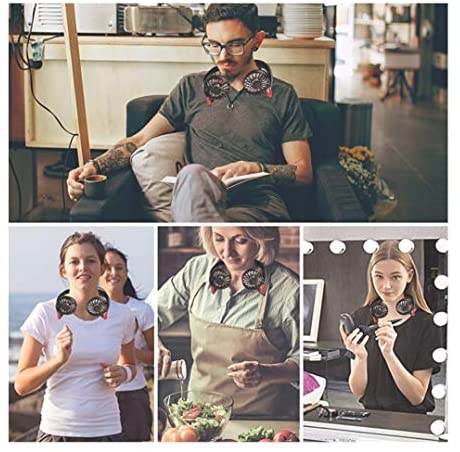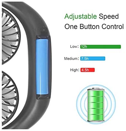 [Longer Working Time]: Rechargeable neck hanging fan, equipped with 1800mAh Lithium-Ion battery. 4.5-12 hours working time depends on different speeds.