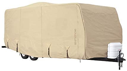 Eevelle Goldline Travel Trailer RV Cover – Waterproof, Heavy Duty, Marine Grade, UV Protection, Durable, Breathable, Anti Rot – Tan – Gray 28 – 30 Feet