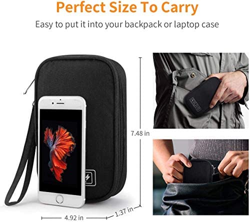 4.72″x 7.48″x 1.37″, cable electronic organizer case have compact size and lightweight make it easy to carry and put into your bag while neatly organize and store your tech gadgets like power bank , cables, cords, earphone, USB drives and SD cards.
