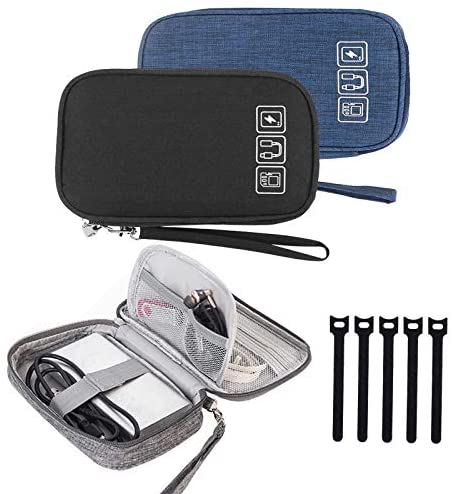 Electronic Organizer Cable Case, Travel Portable Cable Organizer Case, Electronic Accessories Storage Case Soft Carrying Case Pouch for Hard Drive, Cord,Charger,Earphone, USB, SD Card, 2Pack, Black+Blue
