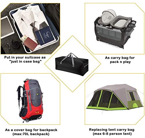 Just in case travel duffel bagReplacing tent carry bagCover bag to protect your backpackCarry bag for Pack N PlayClothing storageShopping bag