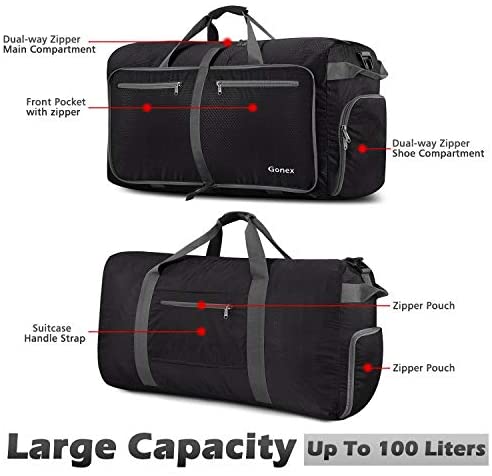 Gonex 100L Packable Travel Duffle Bag, Extra Large Luggage Duffel (Black)