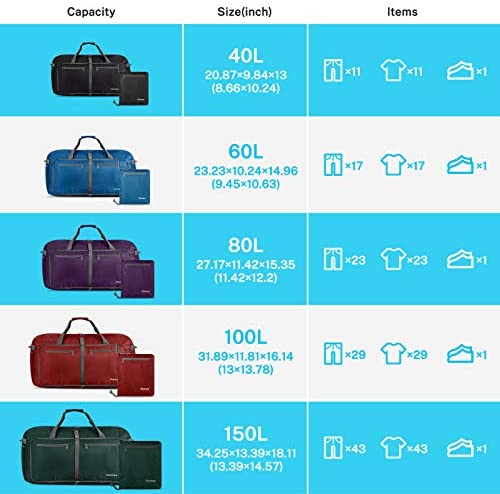 Package includes: 1 x Gonex 100L/150L Duffel