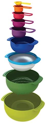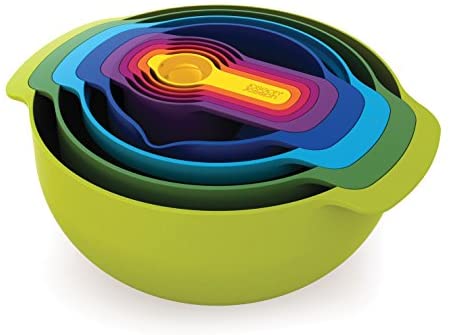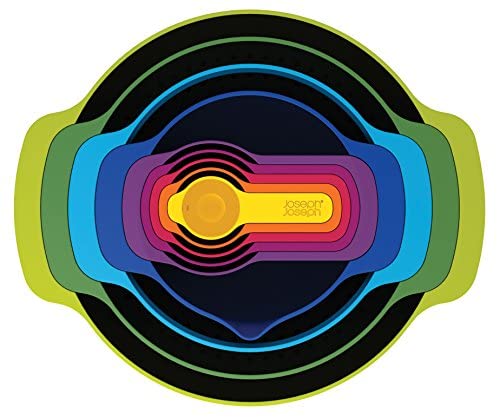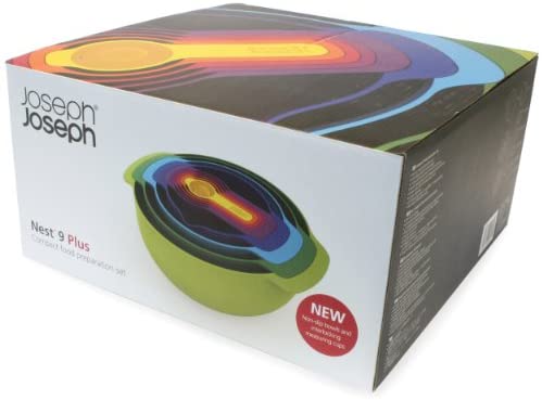 Joseph Joseph Nest 9 Nesting Bowls Set with Mixing Bowls Measuring Cups Sieve Colander, 9-Piece, Multicolored