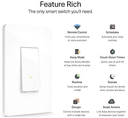 Kasa Smart Light Switch HS200, Single Pole, Needs Neutral Wire, 2.4GHz Wi-Fi Light Switch Works with Alexa and Google Home, UL Certified, No Hub Required , White