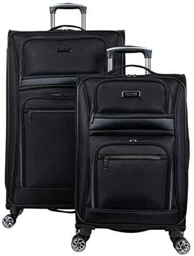 Kenneth Cole Reaction Rugged Roamer Luggage Collection Lightweight Softside Expandable 8-Wheel Spinner Travel Suitcase Bag, Black, 2-Piece (20″ Carry-On / 28″ Check Size)