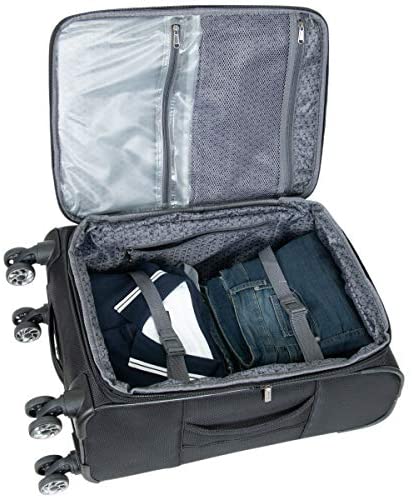 Whether you’re traveling for business or leisure, the Kenneth Cole Reaction “Rugged Roamer” Collection is the perfect partner for any adventure. The 2-piece 20″ carry-on suitcase + 28” check-size suitcase features durable 8-wheel spinners that allow for smooth 360-degree rotation over any terrain, and features top, side, and bottom grab handles for easy lifting. Furthermore, the locking, retractable trolley handle extends to be 41 inches tall and has a convenient push button mechanism. The main compartment interior Includes a secure buckled garment restraint to hold clothes in place and features multiple interior organization pockets. Exterior features an additional front ticket pocket and two additional zipper pockets provide access to frequently needed items. This luggage collection is made of a lightweight and durable 1680D ballistic polyester exterior with metallic hematite zippers. The fully lined tear-resistant interior lining helps protect your personal items, while the expansion feature provides an additional 2 inches of additional packing space if needed. Main compartment zipper pullers feature a small loop that can fit a TSA lock or pad lock for extra security. The 20″ carry-on suitcase was designed to meet almost all domestic and international airline size requirements and fits into most overhead bins of both small and large planes. ★ Backed by a manufacturer 10-year limited guarantee against defects. ★ Dimensions Include Handles & Wheels. ★ Depth Range If Expanded For Additional 2” inches. ★ 20″ Carry-On Overall Dimensions: 22” H x 14” L x 9.5”-11.5” D. ★ 20″ Carry-On Internal Packing Dimensions: 20” H x 13” L x 8.5”-10.5”D. ★ 20″ Luggage Weight: 6.85 lbs. ★ 28″ Luggage Overall Dimensions: 30” H x 18” L x 12” – 14” D. ★ 28″ Luggage Internal Dimensions: 28” H x 17.5” L x 11.5” – 13.5” D. ★ 28″ Luggage Weight: 9.65 lbs. ★ Luggage Set Weight: 16.5 lbs. ★ Perfect lightweight dependable luggage that is ideal for any trip, vacation, or adventure. ★
