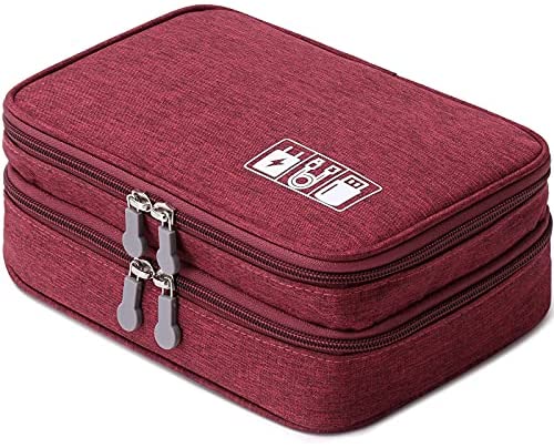 Lanola Double Layer Accessories Bag Electronics Organizer Cable Cord Wire Bag Travel Tech Gadget Charger Storage Case,Cord, Charger, Flash Drive,Hard Drive,Phone, Ipad Mini, SD Card, Power Bank – Red
