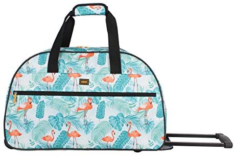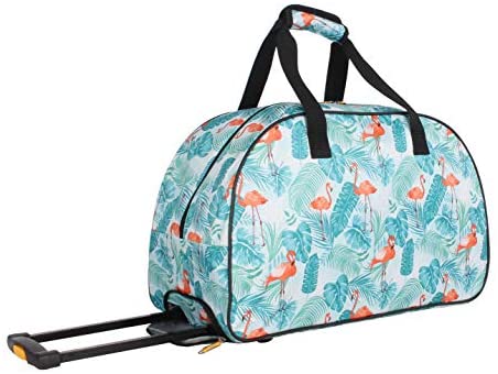 Lucas Designer Carry On Luggage Collection – Lightweight Pattern 22 Inch Duffel Bag- Weekender Overnight Business Travel Suitcase with 2- Rolling Spinner Wheels (Flaming Plam)