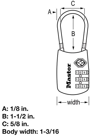 The Master Lock 4688D Set Your Own Combination TSA Approved Luggage Lock features a 1-3/16in (30mm) wide metal body for durability. The 1/8in (3mm) diameter shackle is 1-1/2in (38mm) long and made of vinyl covered flexible braided steel, offering resistance to abuse from baggage handling equipment. Transportation Security Administration (TSA) screeners can open, inspect and relock bags locked with a TSA-Approved lock. Lock your checked baggage with the lock TSA screeners won’t cut The Limited Lifetime provides peace of mind from a brand you can trust.