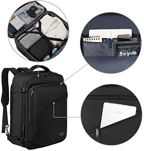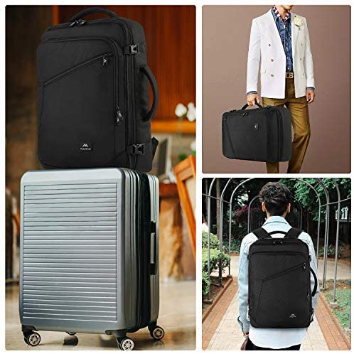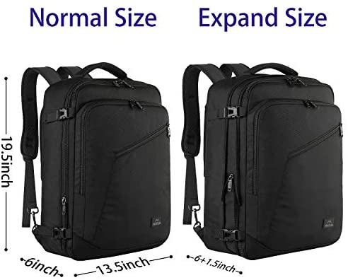 EXPANDABLE & LARGE CAPACITY: This extra large travel backpack with expandable feature offers you more packing capacity. Unzipping to get 40L storage then can easily hold packing cubes, make-up bag, outfits, camera bag and gear, etc. It fits overhead and under seat while on state of standard carry on size, is ideal for men, women, weekend traveler, or occasional vacationer. This versatile luggage backpack also meets airline carry-on requirements, for airlines such as Easy Jet, Spirit, Jet Blue