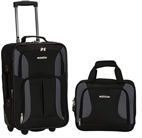 Rockland Fashion Softside Upright Luggage Set, Black/Gray, 2-Piece (14/19)