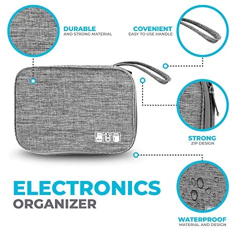 STURDY AND Water-resistant travel pouch: The travel organizer is as DURABLE as they come! Its zipper allows you to make sure that everything is INTACT and FITS PERFECTLY. Holding everything in place, you get PROTECTION from water. Thanks to the WATER-REPELLENT FABRIC built with an excellent elastic loop.This charger organizer also functions as a travel cord organizer, cord organizer travel, cable bag, cord storage organizer, tech organizer organizer bag