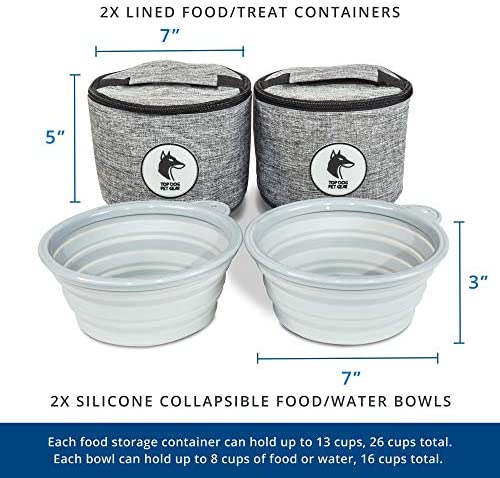 Top Dog Travel Bag – Airline Approved Travel Set for Dogs Stores All Your Dog Accessories – Includes Travel Bag, 2X Food Storage Containers and 2X Collapsible Dog Bowls – Black