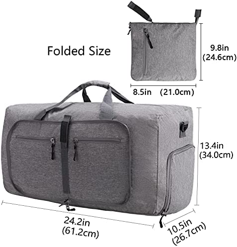 【Foldable & Lightweight Duffle】This packable duffle bag size: 24.2 x 10.5 x 13.4 inches with 65 Liters capacity. Folded Size: 9.8 x 8.5 inches. Although the duffel bag weighs only 0.91 pounds, it can accommodate a lot of things.