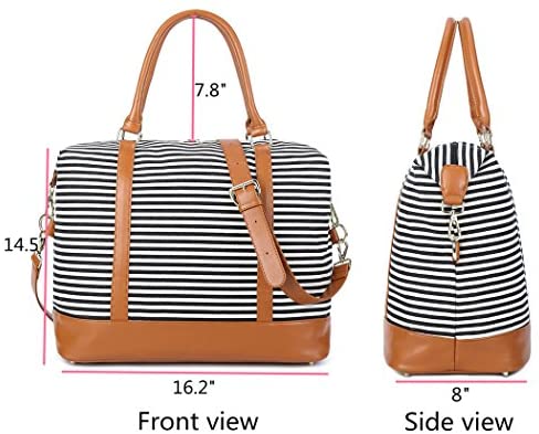 Women Ladies Canvas Weekender Bag Overnight Carry-on Tote Duffel in Trolley Handle (Black Stripe)