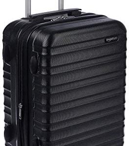 $72.98 Price: (as of – Details) An Amazon Brand Black, Small 21-inch hardside spinner luggage for weekend getaways or as international carry-onInterior capacity: 39 LitersWeight: 7.34 lbs.Protective hard shell with scratch-resistant finish; made of extra-thick ABS (thicker than the competition) for enhanced strength and durabilityFully lined interior with divider; 150D-polyester interior organizer with 3 zippered pockets…