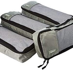 $23.99 Price: (as of – Details) Amazon Basics 4 Piece Packing Travel Organizer Cubes Set – Slim, Grey Double zipper pulls make opening/closing simple and fastMesh top panel for easy identification of contents, and ventilationSoft mesh won’t damage delicate fabricsWebbing handle for convenience when carried by itselfSlim cube dimensions: 14 x 5 x 2.8 inchesMade of…