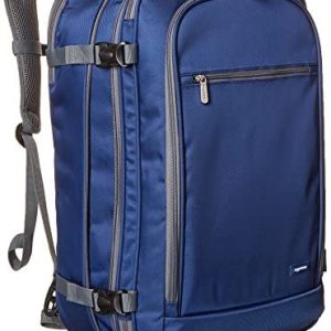 $53.97 Price: (as of – Details) Amazon Basics Carry-On Travel Backpack – Navy Blue Carry-on travel backpack with internal, zippered laptop sleeve; ultra-flexible and lightweight; made of durable polyesterMain compartment with zippered mesh space, optional midway shelf, and internal/external compression strapsFront pocket and front-top pocket for easy access to documents and travel liquids; main upper packing…