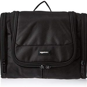 $15.57 Price: (as of – Details) Amazon Basics Hanging, Travel Toiletry Bag Organizer, Shower Dopp Kit, Black Black toiletry bag designed with an internal lining to easily wipe down leaks and spillsMade with durable 1680D polyester to withstand common bathroom spillsLarge main compartment with mesh divide and internal storage spaces; 2 external side compartmentsTop hook displays…