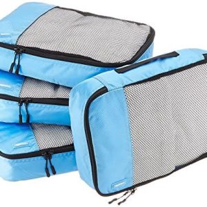 $22.99 Price: (as of – Details) Amazon Basics 4 Piece Packing Travel Organizer Cubes Set – 2 Medium and 2 Large, Blue Double zipper pulls make opening/closing simple and fastMesh top panel for easy identification of contents, and ventilationSoft mesh won’t damage delicate fabricsWebbing handle for convenience when carried by itselfSet includes 2 medium sized cubes…