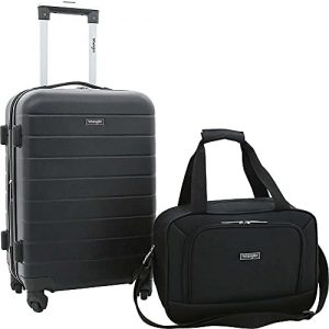 $92.49 Price: (as of – Details) Wrangler brand of Western heritage has represented American freedom and courageous individuality since 1947. This Wrangler carry-on set offers a unique 3-n-1 feature that includes a convenient Cup holder, USB port, and phone holder. The 15″ Boarding tote is lightweight and allows you to conveniently hold travel documents and small…