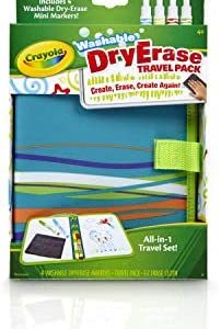 $13.10 Price: (as of – Details) Draw, color, and create on the go with the Crayola Washable Dry Erase Travel Pack! This fun travel activity features 2 Reusable Drawing Surfaces, 4 Washable Dry Erase Markers, and an E-Z Erase Cloth. Kids will love using the whiteboard surface to play games like tic tac toe, dots and…